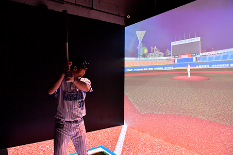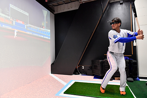 プレーヤーはヘッドマウントディスプレイを着用することで圧倒的な臨場感の中、投球の速度、球筋、ノビ、変化球のキレなどをリアルに体感することができる他、蓄積されたデータの中から対戦投手や球種などを自由に選択できるため、試合に向けたより実践的な準備をすることが可能となります。