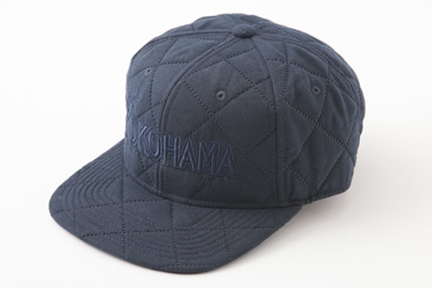 エンボス加工でキルティングされた新しいタイプのキャップ。前面はYOKOHAMAユニフォームロゴを刺繍で表現。