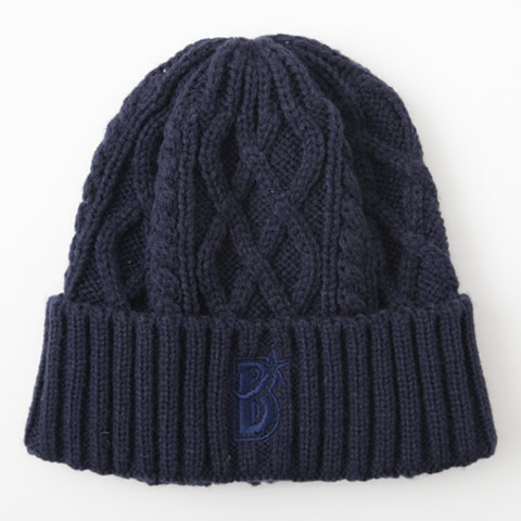 カフを折らずに被るとBシンボルマークの刺繍入りビーニー。折り返して被ると“I☆YOKOHAMA”が周囲に織り込まれたニットキャップになり、2通りのスタイルが楽しめます。