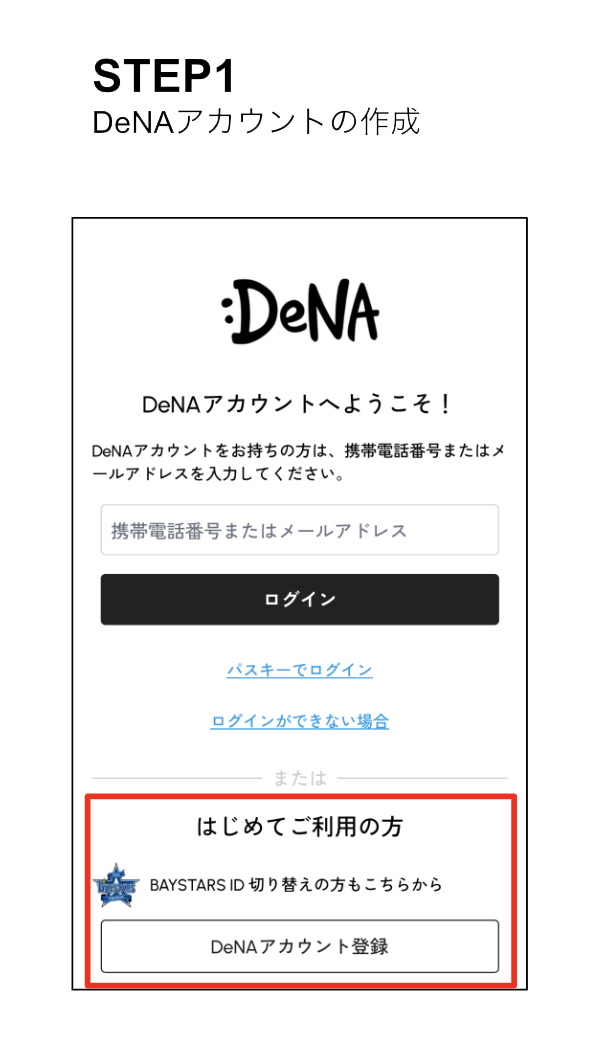 STEP1 DeNAアカウントの登録(無料)はコチラ