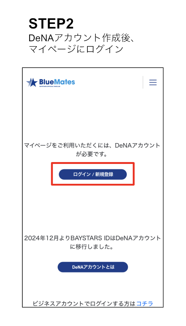 STEP2 DeNAアカウント登録後、マイページにログイン