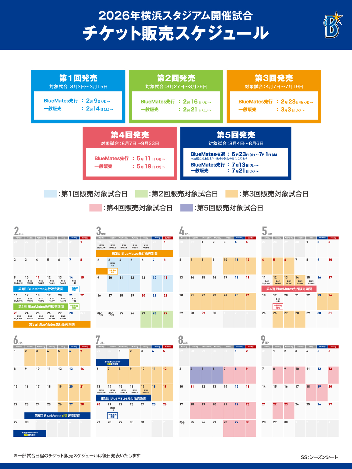 2026年横浜スタジアム開催試合のチケット発売日が決定しましたので、お知らせいたします。