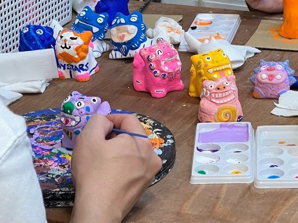 真っ白な石膏のシーサーに色を塗り、世界に一つだけのオリジナル作品を作るワークショップです!所要時間は約1時間で、選手の練習見学の合間や、ちょっとした休憩時間を使ってご参加いただけます!