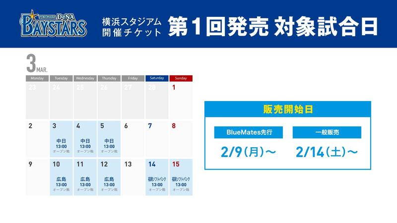 2026年 チケット第1回発売概要【対象試合:3/3(火)〜3/15(日)(オープン戦)】