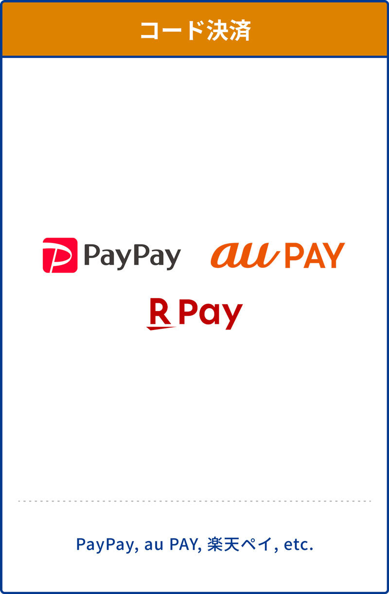 カード決済・電子マネー・コード決済といった幅広い決済手段がご利用いただけます。
