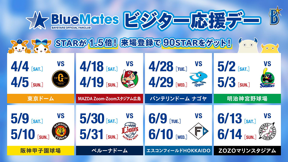 オフィシャルファンクラブ BlueMatesビジター応援デーの開催日程をお知らせいたします。
