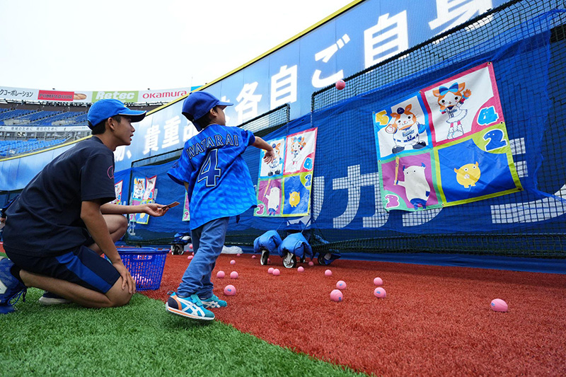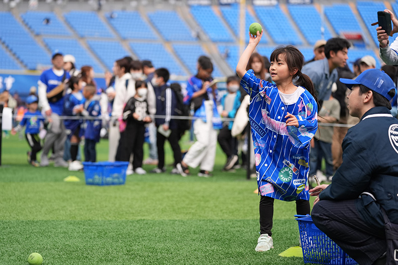 事前にお申込みいただいた野球未経験のお子様に、横浜DeNAベイスターズプレイボールスクールコーチがスクール体験を行います。