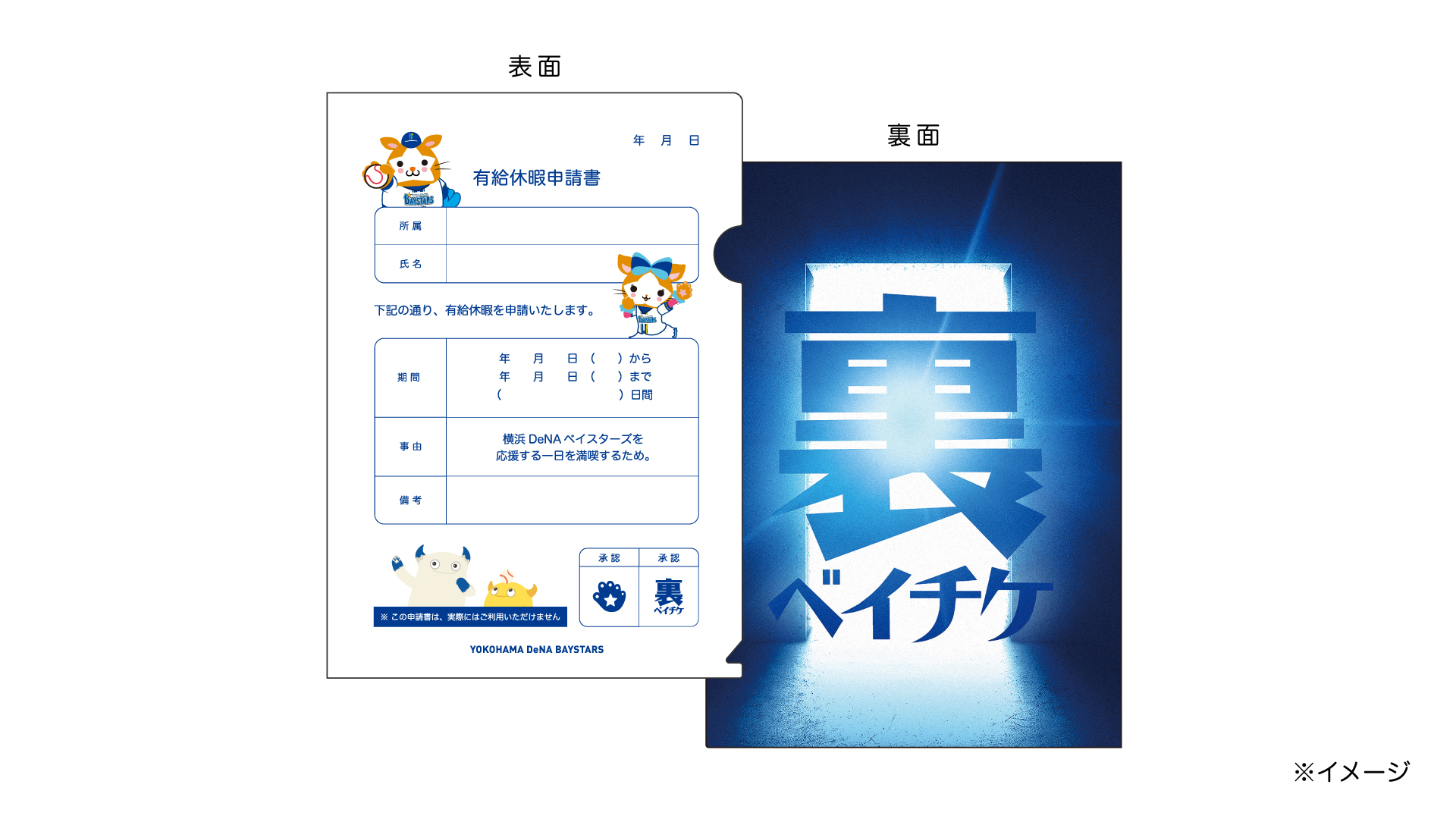 早い時間から来場するからこそ満喫できる試合前の練習見学や、裏ベイチケ限定デザインの有給許可申請書風クリアファイル、ご家族や職場へのお土産がセットとなっております。