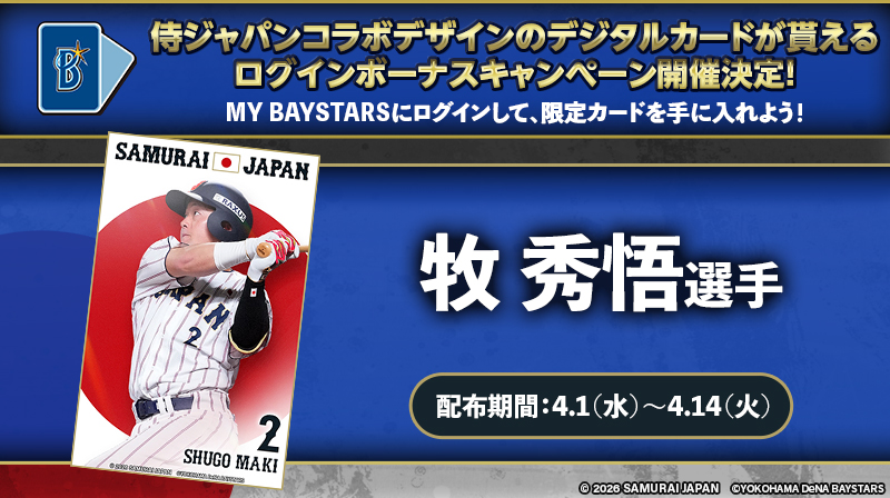 4月1日(水)より、公式デジタルカードコレクションサービス「MY BAYSTARS」にて、各種キャンペーンを実施いたします!