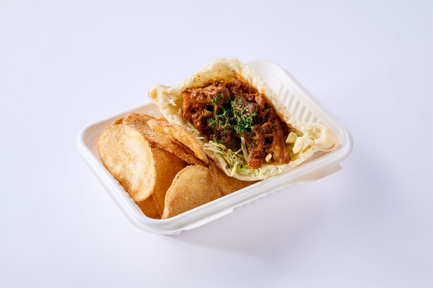 | 商品内容 | もつ肉店から届く新鮮なホルモンを、ガーリックと唐辛子でトリッパ風の旨辛フィリングに。ONE HAND.のケバブでサンドし、1123の人気メニュー「幸せポテト」を添えた、3店舗連動のフェス限定メニュー。 |