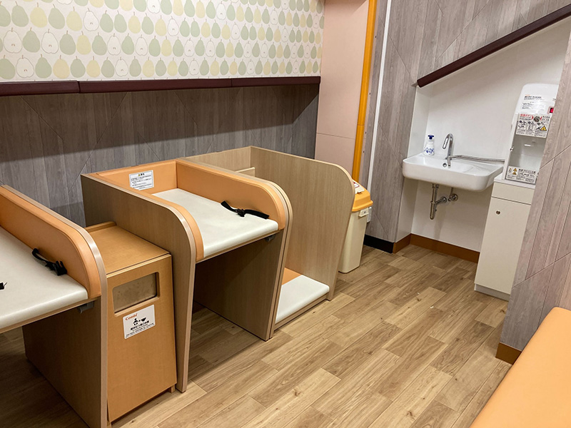 おむつ替えエリアは男性もご利用でき、調乳用温水器もございます。
